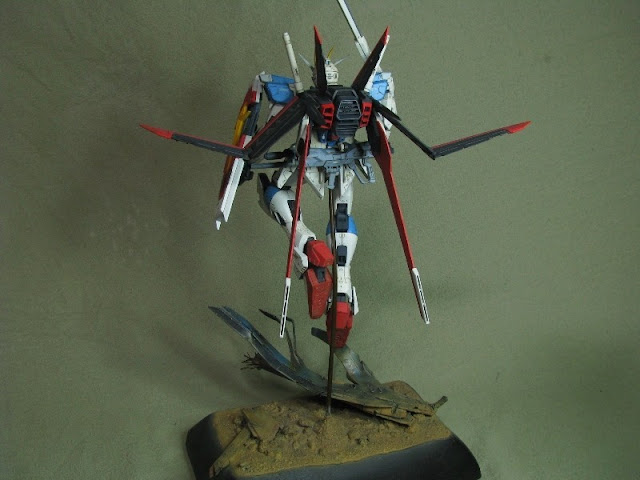 Hey guys, nothing much to tell about this build...simple pla plating and moderate weathering to match with the base...the base is a simple ground work with a damaged MG Freedom wing. This build was also my very first commission job for a client....hopefully his happy with the build.