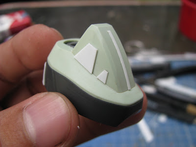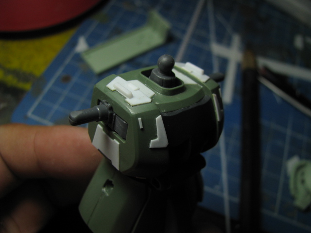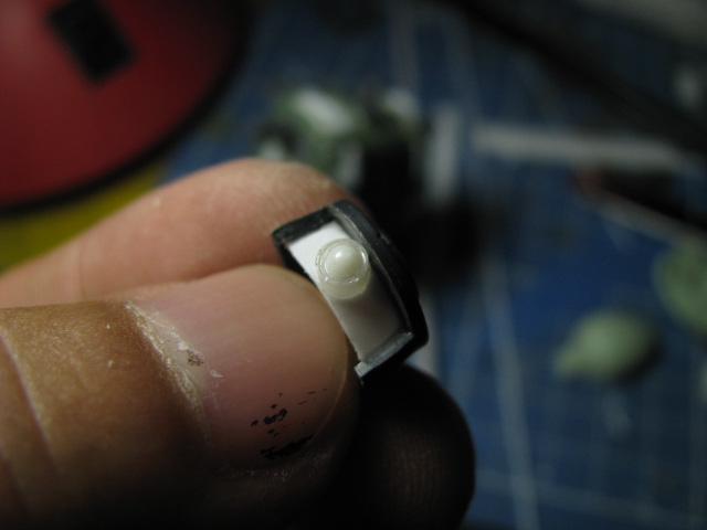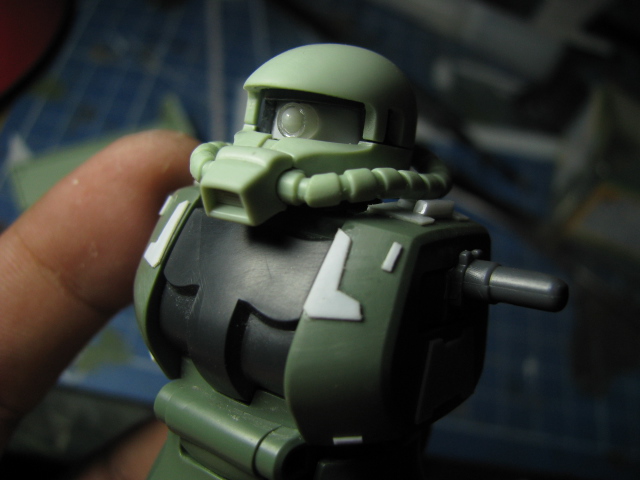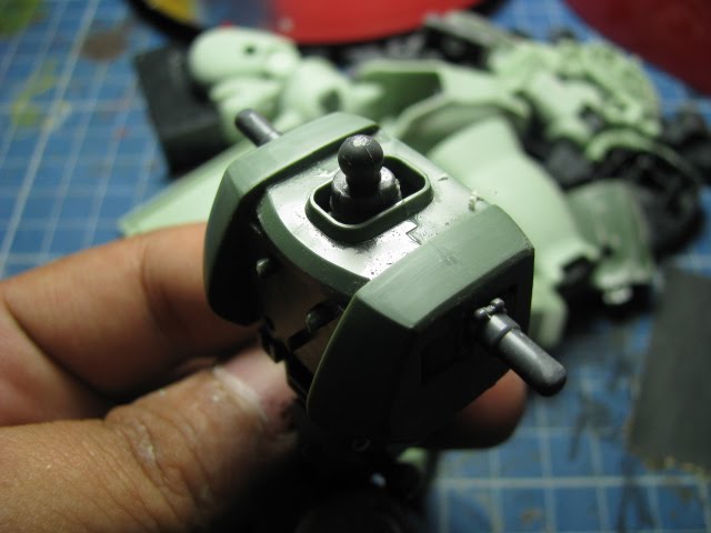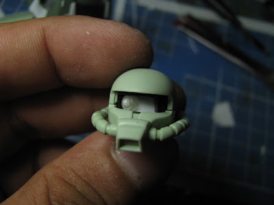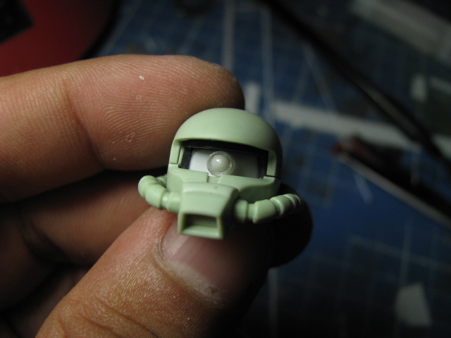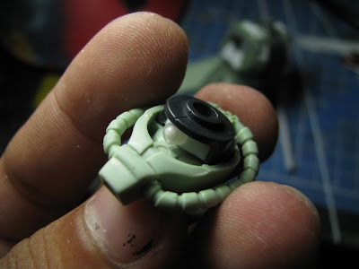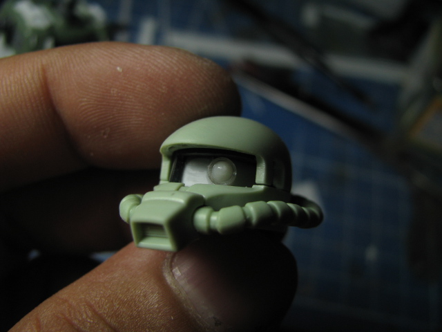 Hello guys, I managed to squeeze a couple of hours today after office and did some mods...I basically gave the HGUC kit a real mono-eye with a piece of pla tube and rod...it looks ok...and also did some initial pla plating on the armor parts.Well, here are the pics of the mono eye mods...