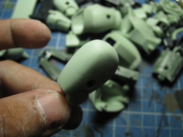 I managed to sand off all the seamlines and sprue/cut marks yesterday, while finishing off with the sanding stage, I was thinking that I could just go for
