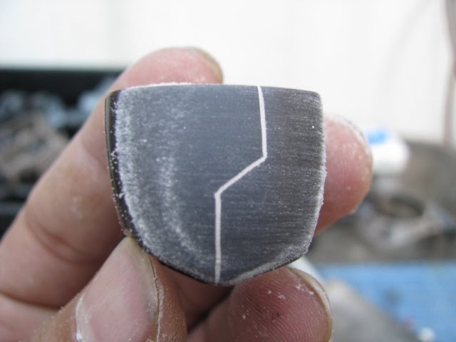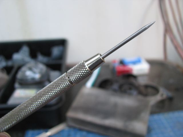 FOURTH, I scribe with the Hasegawa needle point scriber and run through it with very light strokes...