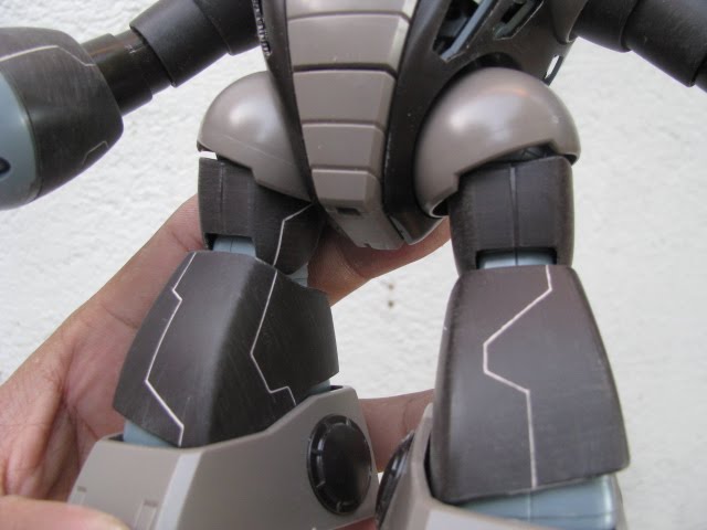 Hello guys, I am not good with scribing panel lines...but I just want to share how I scribe panel lines step by step. I decided to scribe some of the major parts of the Acguy coz the surface is too round for pla plating...well, it can be done...but it's rather difficult than scribing lines along the surface. After taking pics of the Acguy, I realized that I have to add a few more panel lines on the upper arm and forearms of the kit...I will also need to try to scribe on those round shoulders and hip armors...those are tooooo round for pla plates but may also be too round for panel line scribing...will try later. I also added a hole on the chest part to expose the cockpit...will cover this with clear plaplate after painting. Anyways here are some pics...
