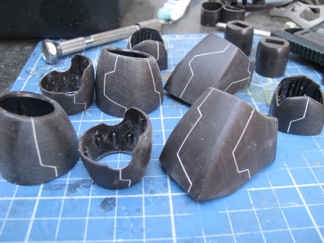 BTW, I also drilled a hole in the chest part to compliment the collar armor and also sawed the stomach armor into three parts.