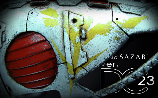 I really like this photo of my MG Sazabi in particular, and after putting it up as the first photo of the post... I thought of creating a bigger version that I could download tomorrow for use in my office. I did a 1920 x 1200 sized wallpaper in Photoshop, but for some reason blogger is reducing it to 1600 x 1000.